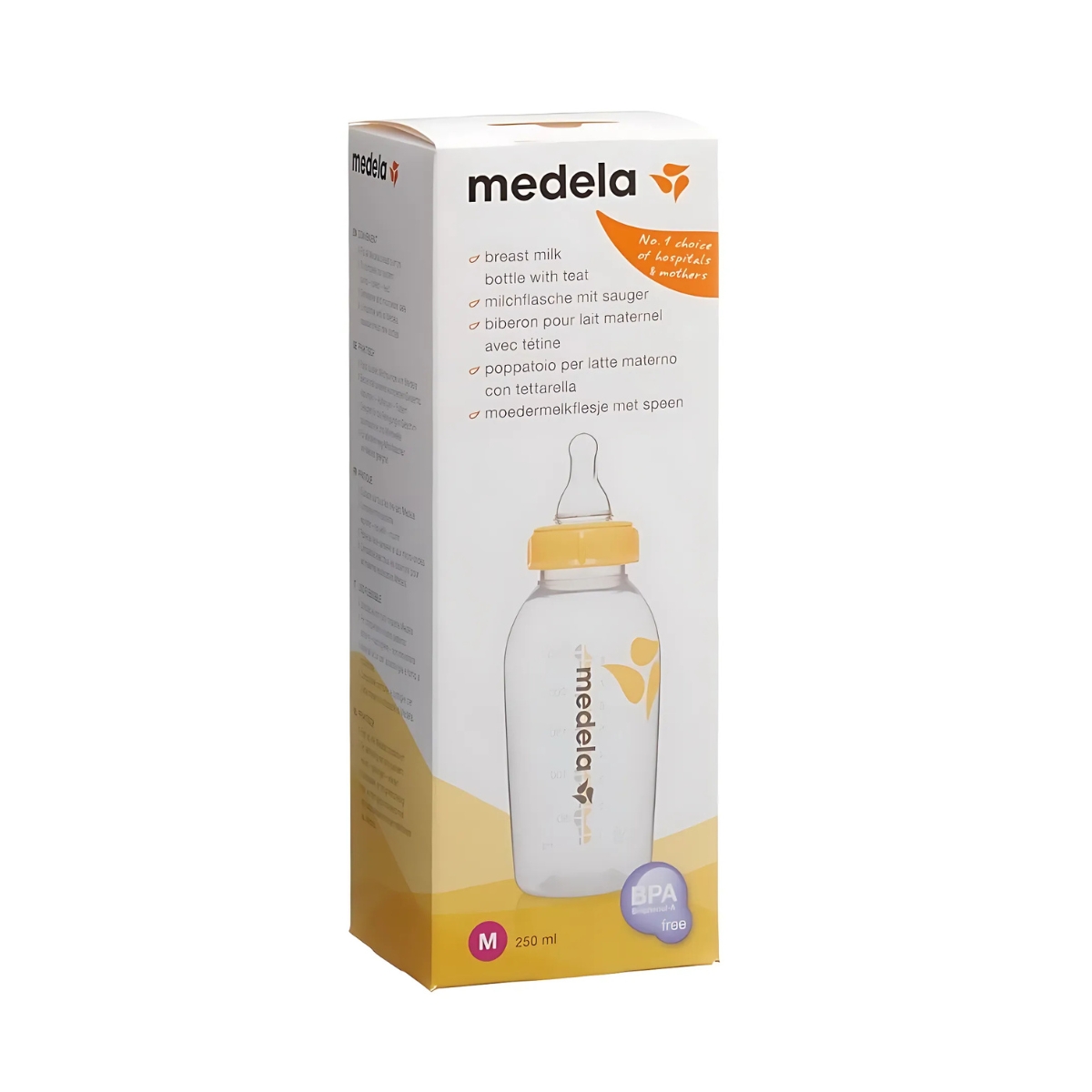 Die Milchflaschen von Medela sind bruchsicher und in zwei Ausführungen erhältlich: 150 ml mit einem „Slow“ (langsamer Fluss) Sauger und 250 ml mit einem „Medium“ (mittlerer Fluss) Sauger.