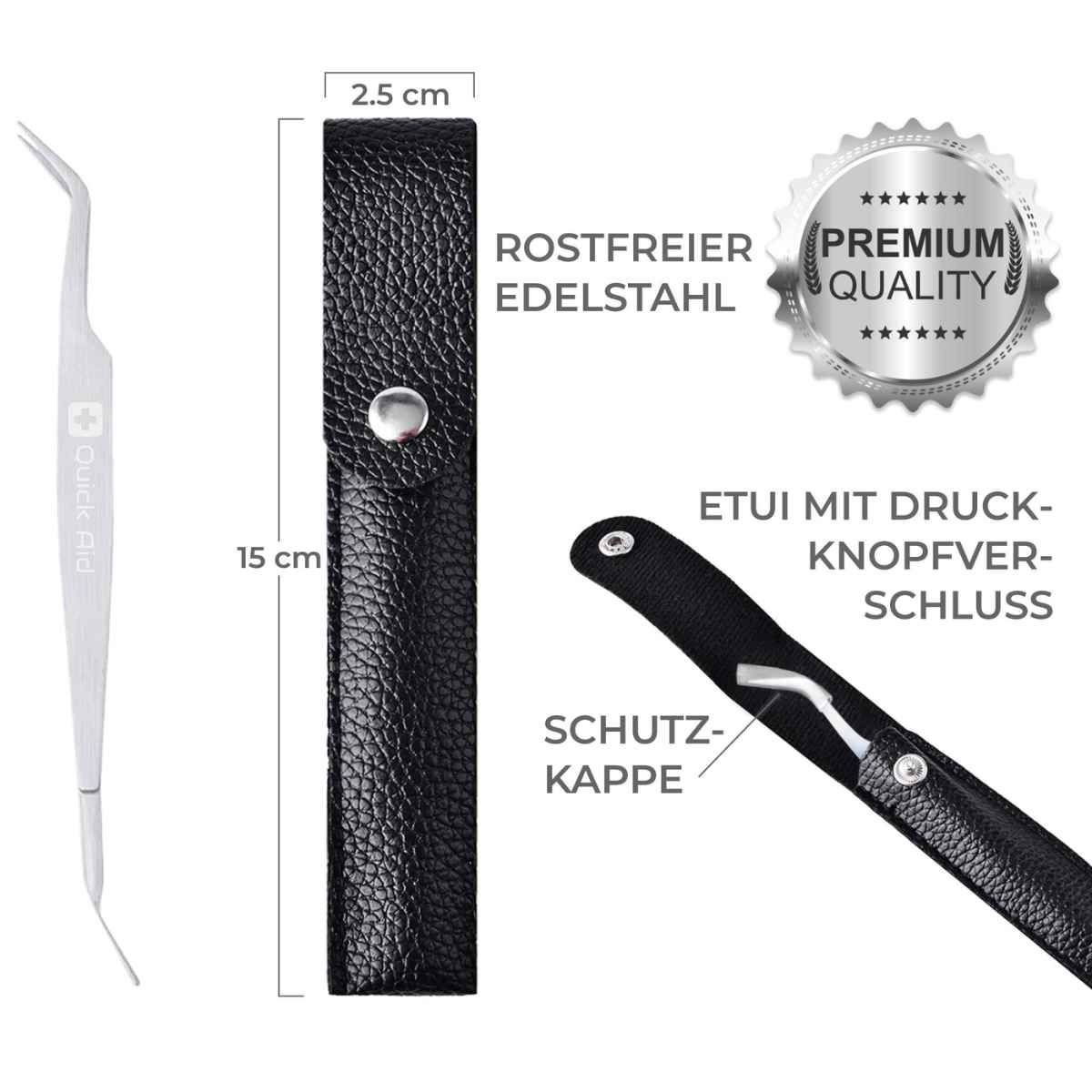 Neben Zecken eignet sich die spitze Pinzette auch zum Entfernen von Splittern, Dornen oder Haaren. Das robuste Edelstahlmaterial sorgt für eine lange Lebensdauer und einfache Reinigung.
