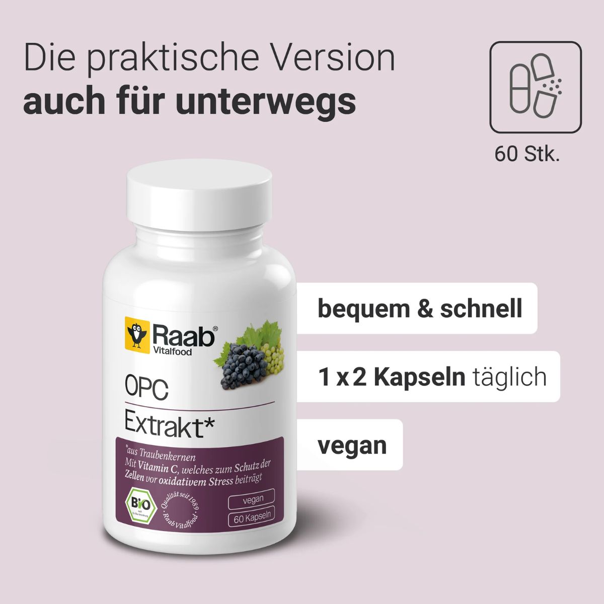 - Beschreibung Raab OPC Extrakt KapselnNahrungsergänzungsmittel mit OPC aus Traubenkernextrakt OPC steht für oligomere Proanthocyanidine… Mehr
