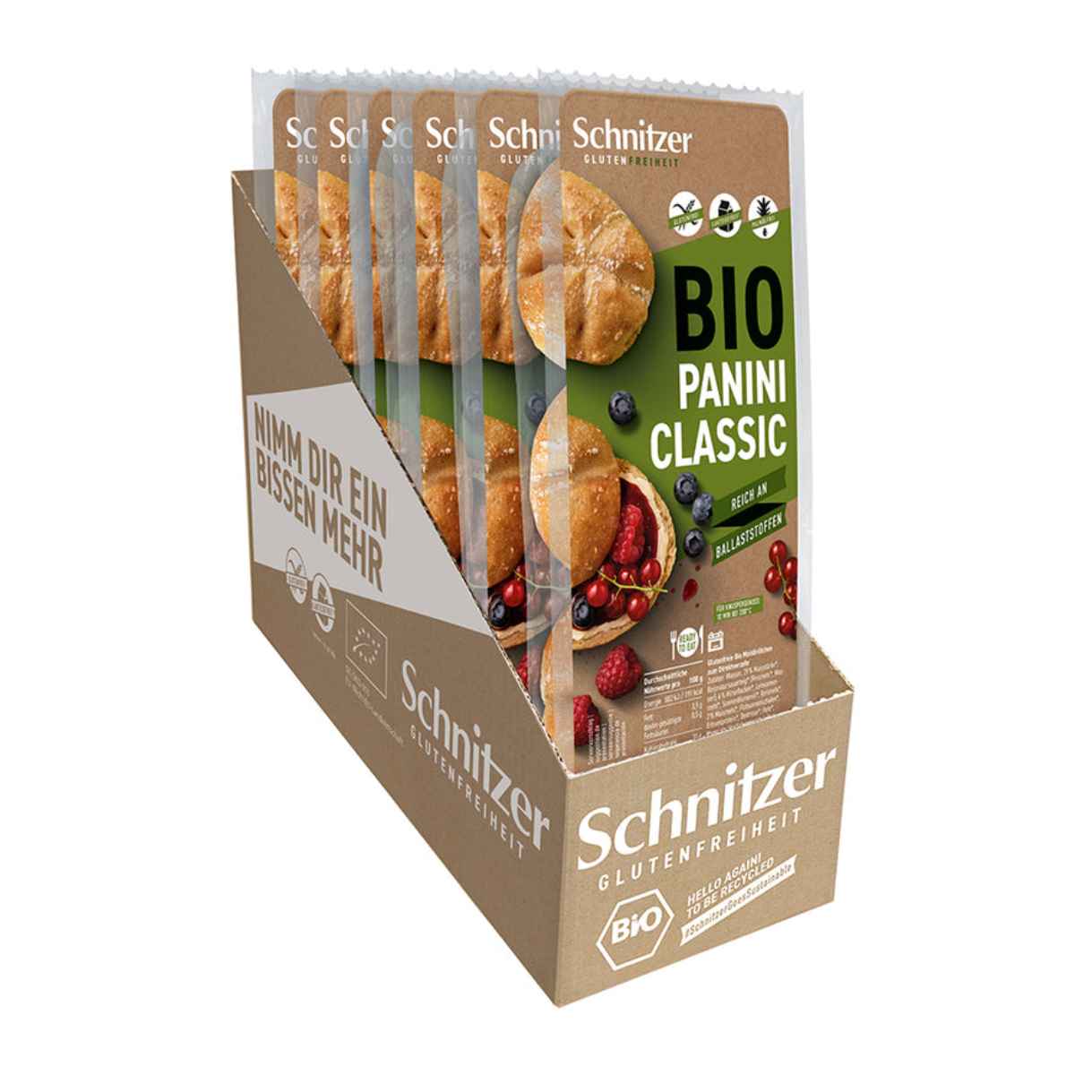 Die Schnitzer Bio Panini Classic hell sind glutenfreie Bio-Aufbackbrötchen mit einer lockeren, hellen Krume und charakteristischem sternförmigem Einschnitt. Sie eignen sich ideal für eine glutenfreie Ernährung und lassen sich vielseitig geniessen – zum Frühstück, für Sandwiches oder als Beilage zu warmen Speisen.