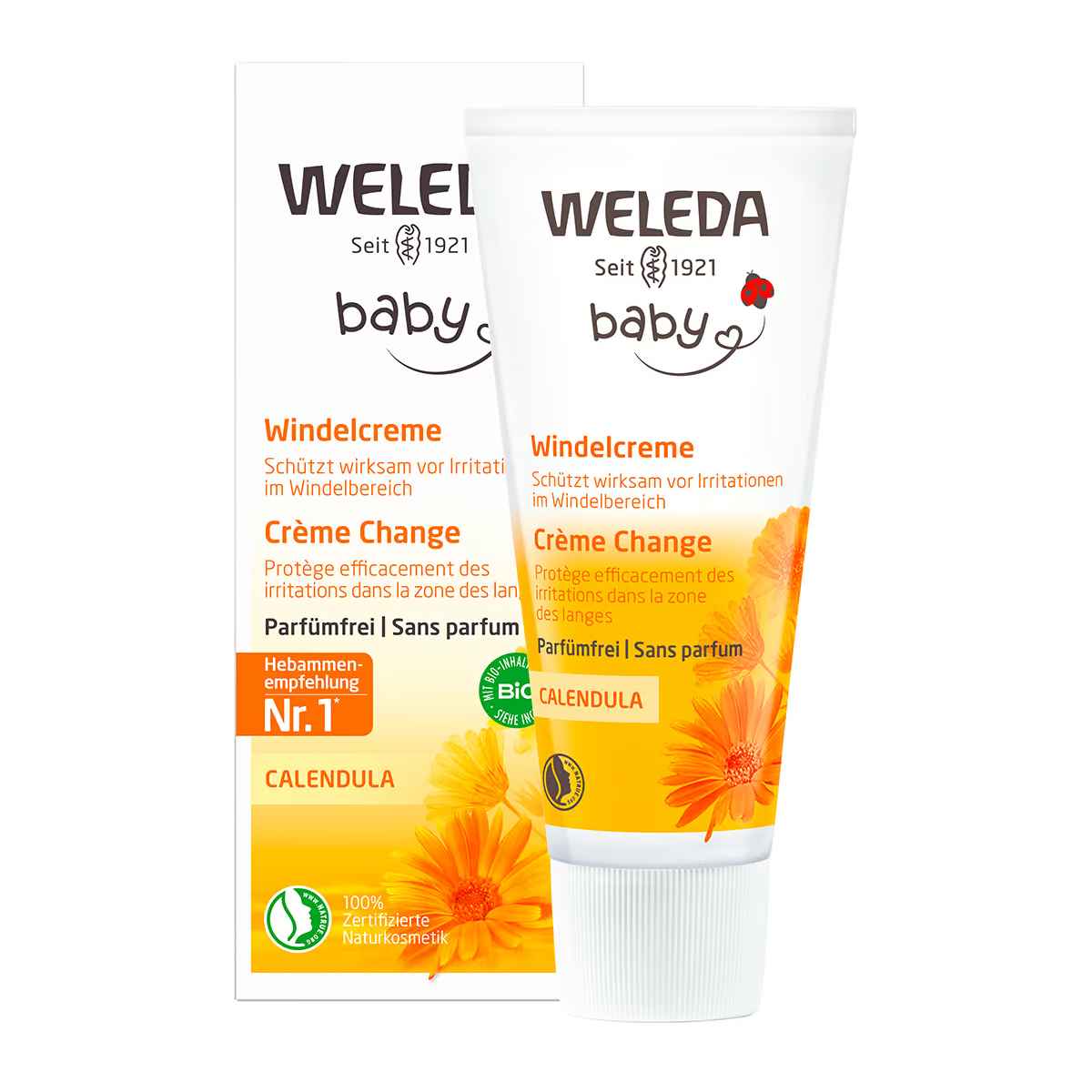 Bio-Calendula beruhigt die zarte Babyhaut. Die Creme schützt wirksam vor
