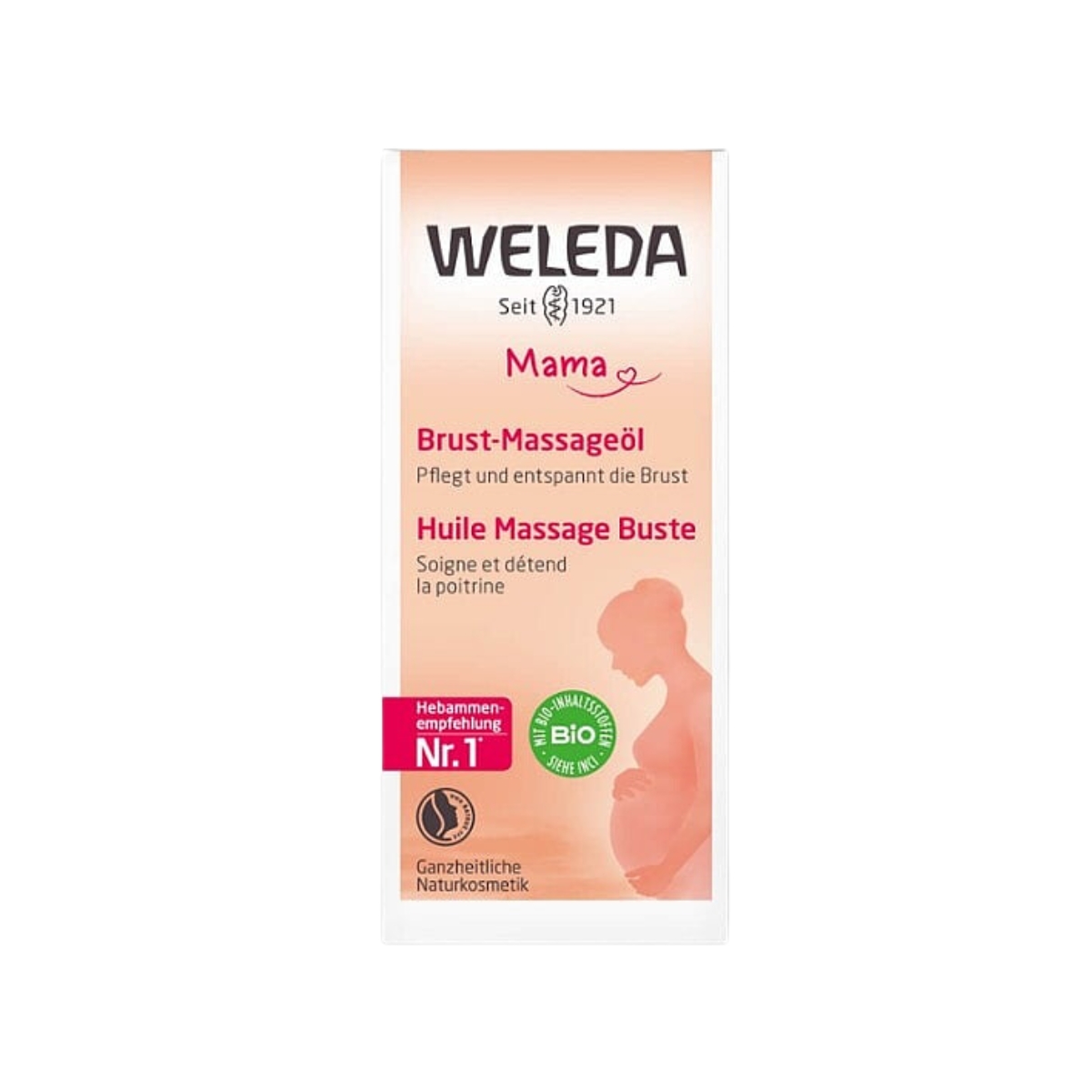 Geburt zwischen dem Stillen mit Weleda Brust-Massageöl. Lassen Sie das