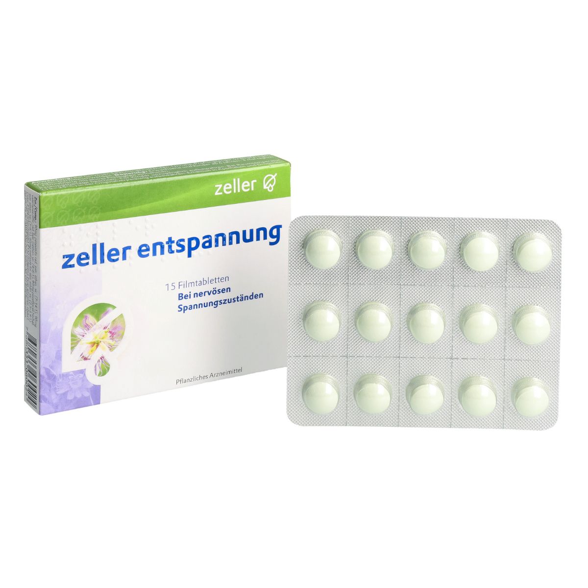 Zeller Entspannung ist ein pflanzliches Arzneimittel mit Extrakten aus Pestwurzeln, Baldrianwurzeln, Melissenblättern und Passionsblumenkraut.