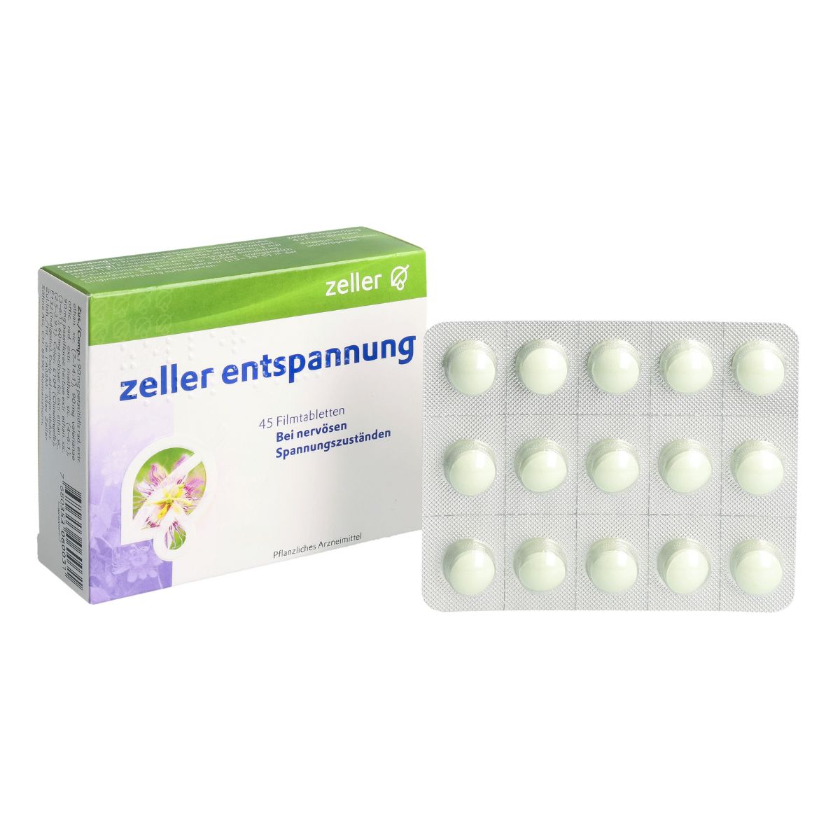 Zeller Entspannung ist ein pflanzliches Arzneimittel mit Extrakten aus Pestwurzeln, Baldrianwurzeln, Melissenblättern und Passionsblumenkraut.